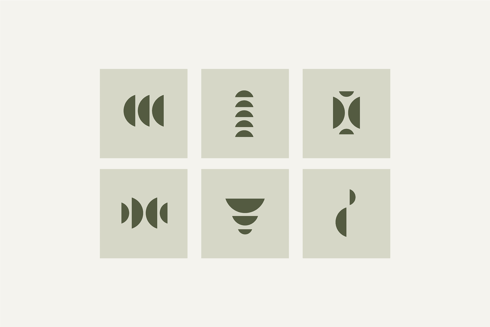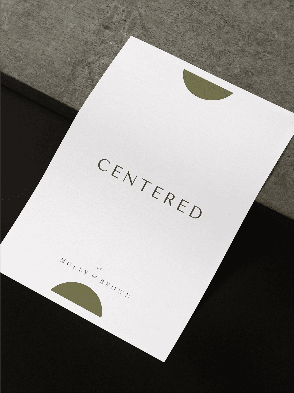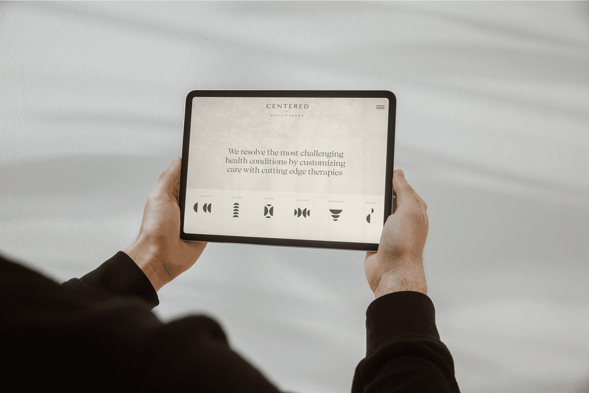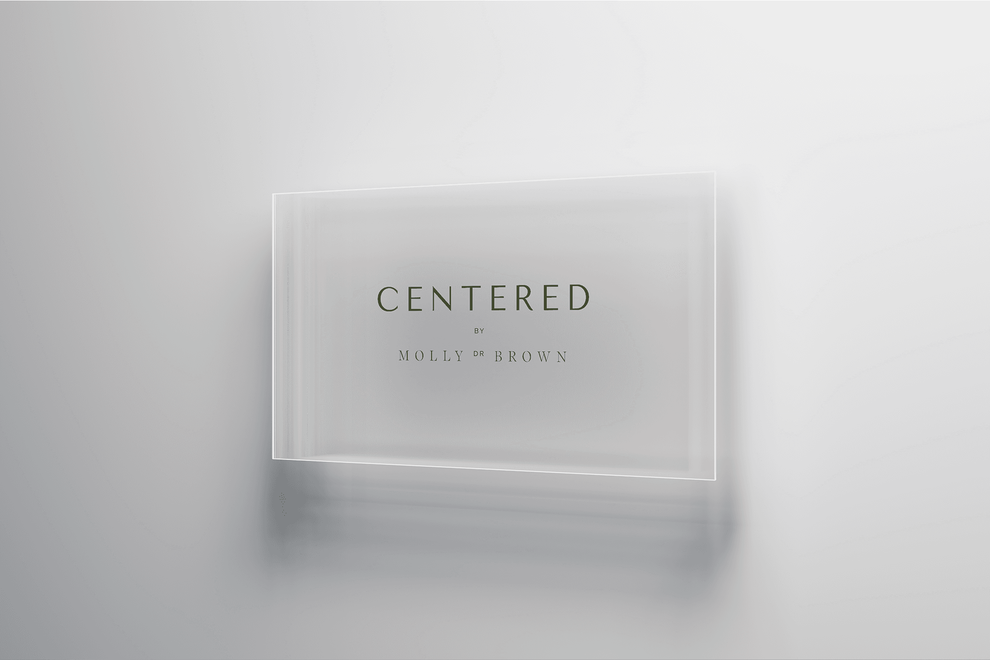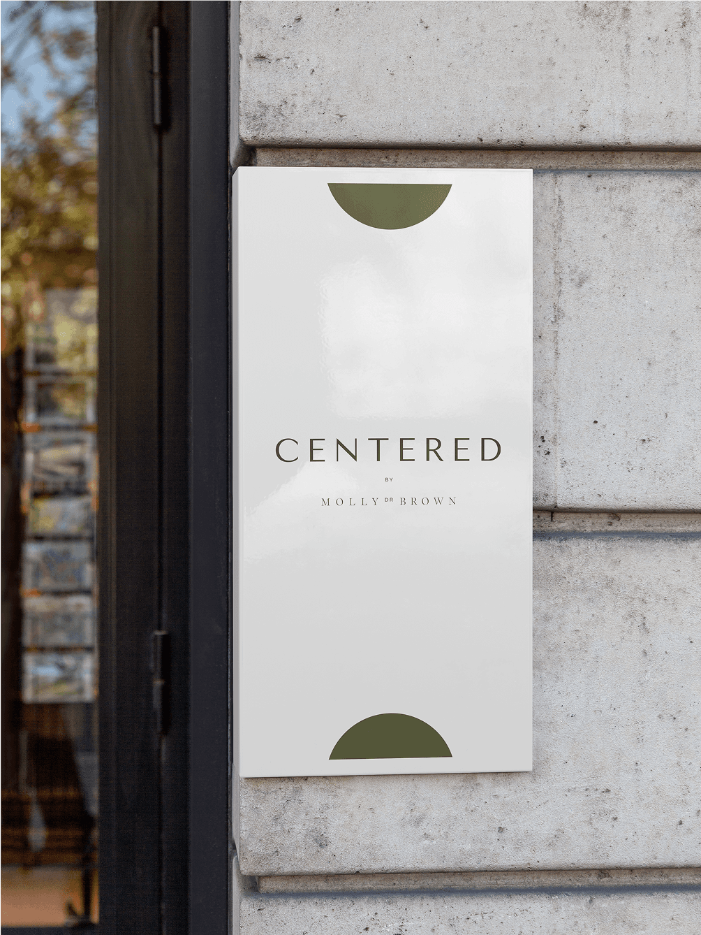 We built Centered around semi-circle shapes that shift and flow like brain waves—sometimes scattered, sometimes perfectly aligned, always in motion. Each configuration represents a different therapeutic modality in Dr. Molly's toolkit, creating a visual language that's as dynamic as the healing process itself. The identity captures something essential: that getting centered isn't a static state, it's an active dance between mind and body.