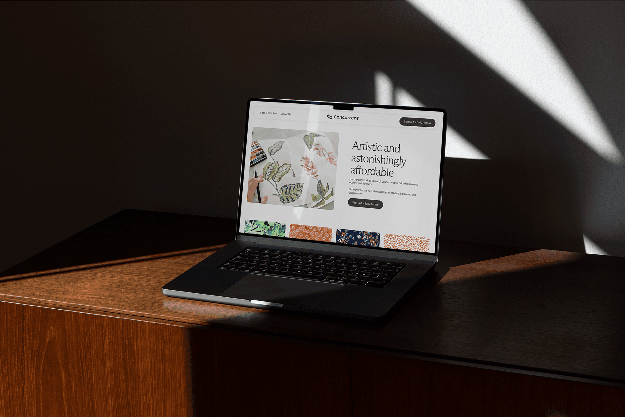 We developed a cohesive brand identity that speaks directly to designers who need beautiful prints without the usual hassles. The brand unifies their diverse artwork portfolio while clearly explaining their non-exclusive licensing model—high-quality, hand-painted designs that you can download instantly and make your own. Now designers can immediately understand what makes Concurrent different: professional artwork that's actually affordable and immediately accessible.