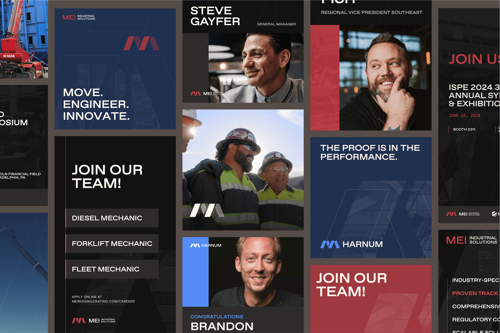 MEI Industrial Solutions moves entire industries forward—literally. With over 1,700 employees across 25 locations, they're quietly building a billion-dollar industrial empire that keeps America's infrastructure running. But their brand was still carrying the business card of a regional rigging company, not the industrial powerhouse they'd become.