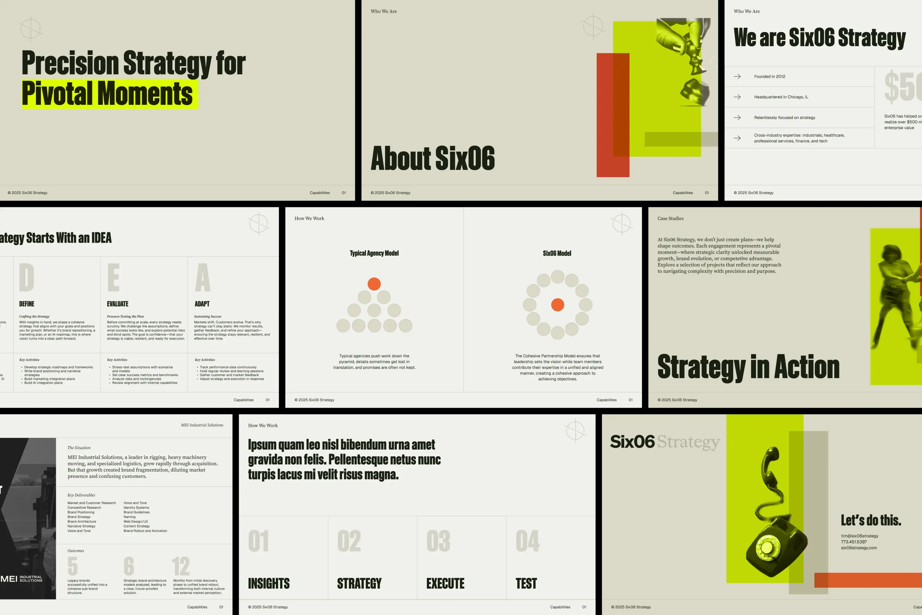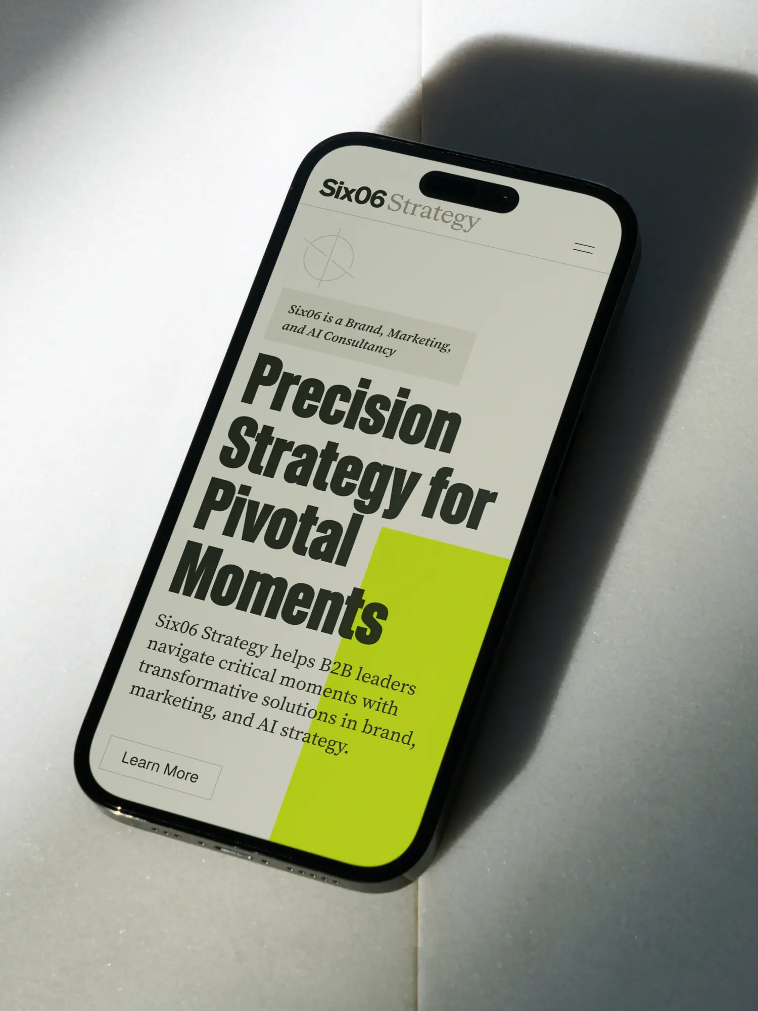 Tim proposed a new name and we went all in. Six06 now signals the precision strategy work Tim delivers to B2B clients, with a modular identity system that gives flexibility across touchpoints while showcasing his strategic frameworks and thought leadership.