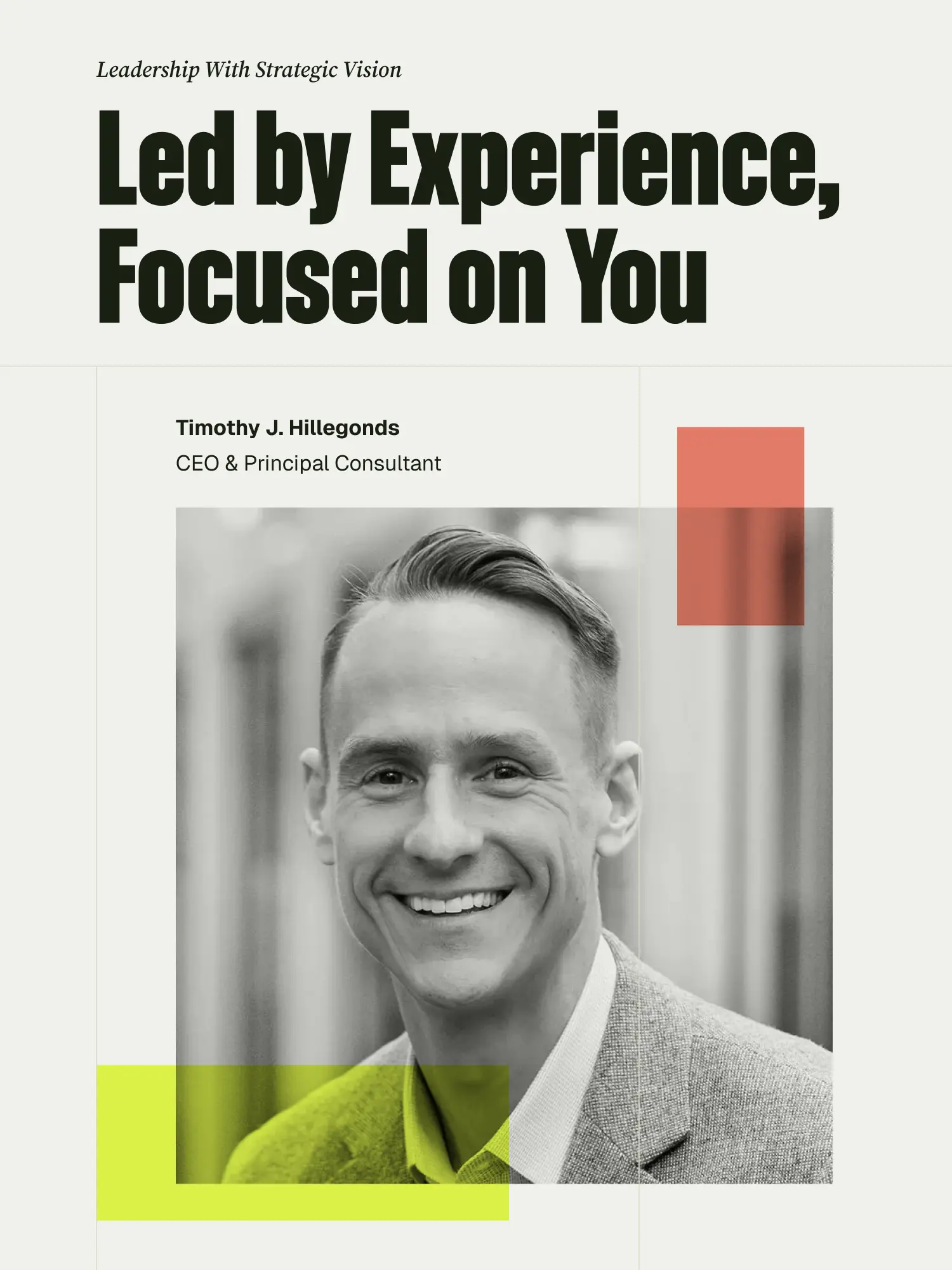 Tim Hillegonds brought us in to evolve Thrive Creative Services into Thrive Strategy, a rebrand that would better reflect the strategic advisory work at the heart of his practice. Midway through, it became clear we were making a pretty drastic evolution and needed more than a name tweak.